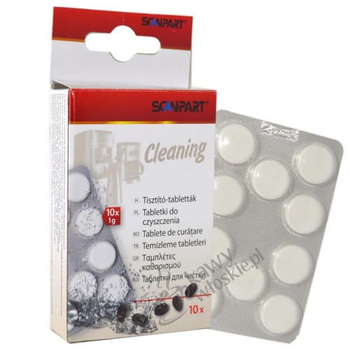 Uniwersalne tabletki czyszczące Scanpart są rekomendowane do wszystkich ekspresów automatycznych oraz kolbowych. Opakowanie zawiera 10 tabletek czyszczących. Do jednego procesu czyszczenia należy wykorzystać jedną tabletkę.